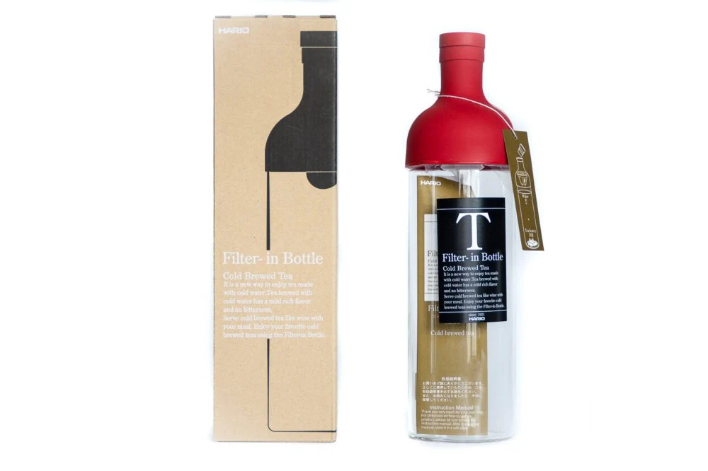 The most handy and easy to use cold-brew bottle around, extremely popular in Japan. Made of glass with a rubber filter in the upper part. You can prepare about 750ml of cold tea with this model.